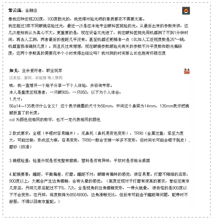 其实,网友对眼镜店的要求包括:1.验光水平高;2.服务员会推荐合适的镜框;3.磨片技术好;4.矫正镜框的师傅水平好;5.服务态度好;6.产品品质有保障等。